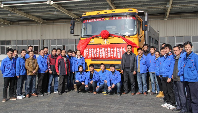 熱烈慶祝陜汽淮南專用汽車有限公司首臺自卸車上裝順利完成試制。 2012年11月27日上午12:08,由陜汽淮南專用汽車有限公司自行設(shè)計研發(fā)的首臺自卸車上裝產(chǎn)品試制成功,公司全體員工共同見證了這一歷史時刻,這也標志著陜汽淮南專用汽車有限公司邁入一個新的發(fā)展里程。 自2012年7月以來,公司相關(guān)人員克服了時間緊、任務(wù)重等多種困難,全體員工共同努力,保證了首臺自卸車上裝順利完成試制。 該車外形美觀,結(jié)構(gòu)設(shè)計先進,各項性能優(yōu)異,可以與國內(nèi)知名自卸車上裝生產(chǎn)廠家的同類產(chǎn)品相媲美。