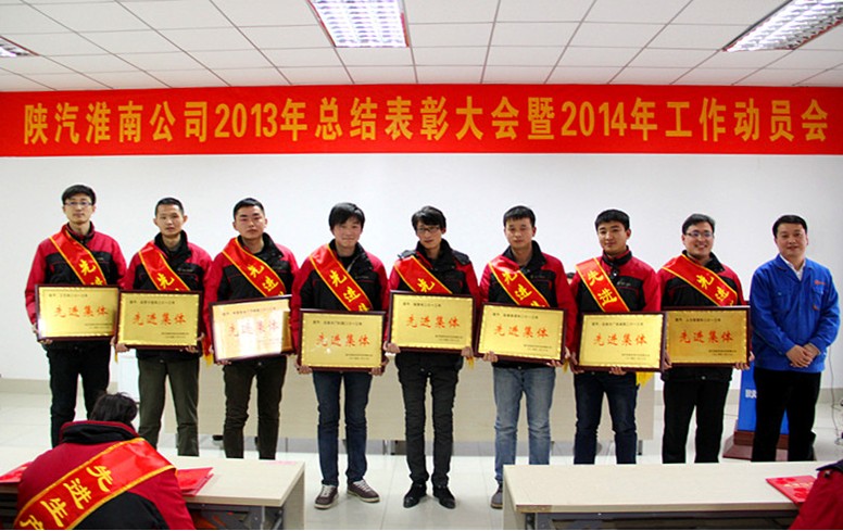 律回春暉漸,萬(wàn)象始更新。2014年1月16日下午4點(diǎn),陜汽淮南公司2013年總結(jié)表彰大會(huì)暨2014年工作動(dòng)員會(huì)在公司培訓(xùn)教室隆重召開(kāi),會(huì)議由副總經(jīng)理?xiàng)顏嗕h主持,公司全體班組長(zhǎng)以上干部及部分員工代表共100余人參加了大會(huì)。 大會(huì)在雄壯的陜汽之歌的歌聲中拉開(kāi)序幕,首先,魏炳亮總經(jīng)理作了主題為《直面挑戰(zhàn) 同心同德 開(kāi)創(chuàng)2014年公司發(fā)展新局面》的報(bào)告。在報(bào)告中,魏總從市場(chǎng)營(yíng)銷(xiāo)、技術(shù)質(zhì)量、生產(chǎn)制造、財(cái)務(wù)運(yùn)營(yíng)、綜合管理等方面對(duì)公司2013年工作進(jìn)行了全面系統(tǒng)的總結(jié),同時(shí)也深刻剖析了工作中存在的不足,并強(qiáng)調(diào)2014年淮南公司將在集團(tuán)公司正確引領(lǐng)下,緊緊圍繞公司指導(dǎo)方針,以生產(chǎn)制造為核心,以產(chǎn)能提升、質(zhì)量、交貨期為關(guān)鍵抓手,緊抓發(fā)展機(jī)遇,以科學(xué)的管理機(jī)制和靈活的經(jīng)營(yíng)策略力爭(zhēng)完成全年8000輛的經(jīng)營(yíng)目標(biāo)。 隨后,大會(huì)對(duì)2013年度涌現(xiàn)出的 “先進(jìn)集體”、“先進(jìn)(生產(chǎn))工作者”和 “崗位標(biāo)兵”進(jìn)行了現(xiàn)場(chǎng)表彰,公司領(lǐng)導(dǎo)為各類(lèi)先進(jìn)頒發(fā)了榮譽(yù)獎(jiǎng)牌及證書(shū)。同時(shí),三位先進(jìn)單位、先進(jìn)個(gè)人代表分別就各自工作做了感人至深的先進(jìn)事跡報(bào)告,并表達(dá)了今后將會(huì)繼續(xù)立足本職、再接再厲,確保完成2014年各項(xiàng)工作任務(wù)。 此次大會(huì)的召開(kāi),進(jìn)一步激發(fā)了員工的工作激情,堅(jiān)定了全體員工完成2014年產(chǎn)銷(xiāo)目標(biāo)的信心和決心。相信在各級(jí)政府和集團(tuán)公司的大力支持下,淮南公司將義無(wú)反顧,滿(mǎn)懷信心,全面迎接新的機(jī)遇和挑戰(zhàn),朝著更高、更遠(yuǎn)的目標(biāo)邁進(jìn)。