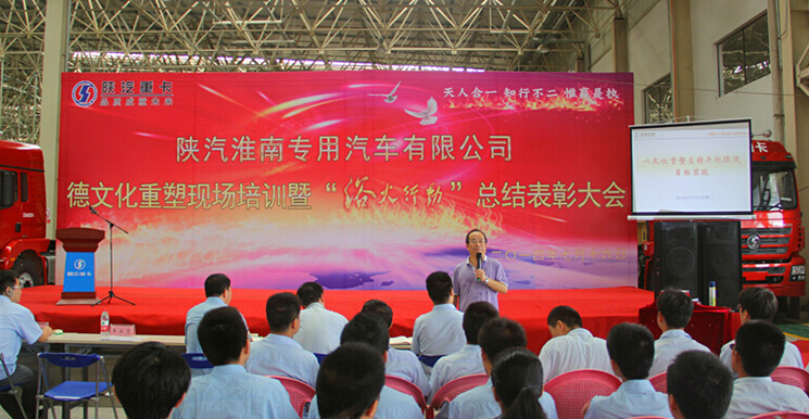 為總結(jié)淮南公司二季度“浴火行動”工作,認(rèn)真落實(shí)集團(tuán) “千億陜汽”戰(zhàn)略目標(biāo),保障德文化落地、生根,淮南公司于7月16 日上午召開德文化重塑現(xiàn)場培訓(xùn)暨“浴火行動”表彰大會,大會特邀集團(tuán)企業(yè)文化總監(jiān)王永志參加,淮南公司領(lǐng)導(dǎo)及500余名干部員工共同參加此次大會。 大會在鏗鏘有力的《陜汽之歌》大合唱中拉開序幕。王總監(jiān)結(jié)合淮南公司發(fā)展特點(diǎn),圍繞《以文化重塑支持千億陜汽目標(biāo)實(shí)現(xiàn)》主題進(jìn)行現(xiàn)場培訓(xùn),培訓(xùn)內(nèi)容豐富,效果突出。通過列舉眾多國內(nèi)外知名公司成功案例,采取宣貫、提問、互動等多種靈活方式進(jìn)行講解,現(xiàn)場氣氛活躍,講得生動,聽得輕松。此次培訓(xùn)使淮南公司全體員工更加聚焦戰(zhàn)略、咬定目標(biāo),“說到做到,做就做最好”! 在王總監(jiān)激情澎湃、形象生動的“德文化重塑”培訓(xùn)之后,淮南公司對“浴火行動”中表現(xiàn)突出、勇于奉獻(xiàn)的30名“最可愛的你”及9個(gè)最佳團(tuán)隊(duì)進(jìn)行表彰。 大會最后,公司總經(jīng)理魏炳亮發(fā)表了題為《將浴火行動精神化作繼續(xù)奮戰(zhàn)的動力》的總結(jié)講話,要求各單位針對德文化重塑要求,制定切實(shí)有效的德文化落地措施,在肯定浴火行動成績的基礎(chǔ)上,鼓勵全體員工再接再厲,以更強(qiáng)烈的緊迫感和對事業(yè)的執(zhí)著之心,奮力實(shí)現(xiàn)淮南公司下半年經(jīng)營目標(biāo),為千億陜汽開局之年目標(biāo)順利達(dá)成貢獻(xiàn)力量。