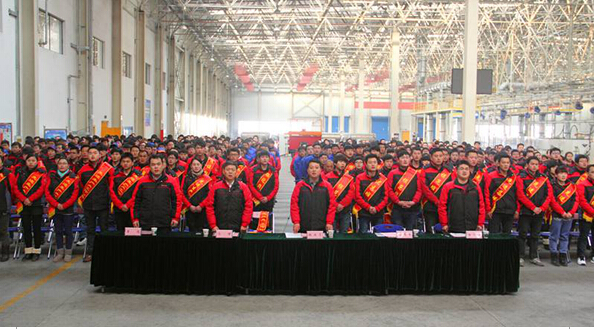 春風(fēng)綠大地,萬物展生機。2015年2月12日,陜汽淮南專用汽車有限公司2014年總結(jié)表彰暨2015年工作動員大會在公司總裝分廠隆重召開,會議由副總經(jīng)理楊亞鋒主持,公司領(lǐng)導(dǎo)班子及全體550余名職工參加了大會。 大會在雄壯的陜汽之歌中拉開序幕,首先,總經(jīng)理魏炳亮作了主題為《堅定信心 全面突破》的報告。在報告中,魏總從市場突破、特色專用車產(chǎn)品研發(fā)、生產(chǎn)組織能力提升、質(zhì)量保障、人力資源和黨群建設(shè)等9方面對公司2014年工作進行了全面系統(tǒng)的總結(jié),同時也深刻剖析了工作中存在的不足;為確保公司2015年產(chǎn)銷底盤3000輛,上裝1000輛,力爭產(chǎn)銷各類汽車1萬輛的目標(biāo),進而實現(xiàn)一體兩翼的布局,魏總從8個方面進行了系統(tǒng)闡述。隨后由工會副主席趙林波作了題為《完善平臺 主動服務(wù) 協(xié)同發(fā)展》的報告,對2014年工會工作和2015年計劃進行匯報,匯報指出2015年工會重點將從完善基層組織,激發(fā)職工創(chuàng)造活力、維護職工利益,豐實職工業(yè)余文化生活方面,全方位發(fā)力,增強職工凝聚力。同時,趙主席強調(diào)工會是職工的娘家人,工會將竭盡所能服務(wù)大局,服務(wù)職工,為員工辦實事、辦好事,更希望員工能夠以發(fā)展的眼光與企業(yè)共同成長。 隨后,大會對2014年度涌現(xiàn)出的“先進集體”、“先進(生產(chǎn))工作者”和“崗位標(biāo)兵”及2014年對生產(chǎn)系統(tǒng)各類先進進行了現(xiàn)場表彰,公司領(lǐng)導(dǎo)為各類先進頒發(fā)了榮譽獎牌及證書。同時,先進集體和先進個人代表分別就各自工作做了感人至深的先進事跡報告,并表達了今后將會繼續(xù)立足本職、再接再厲,團結(jié)一心確保完成2015年各項工作任務(wù)的決心。 此次大會的召開,進一步激發(fā)了員工的工作激情,堅定了全體員工完成2015年產(chǎn)銷目標(biāo)的信心和決心。相信在各級政府和集團公司的大力支持下,淮南公司將攻堅克難、銳意進取,搶抓新常態(tài)下的戰(zhàn)略機遇,戮力拼搏,共創(chuàng)更美好的明天,在實現(xiàn)千億陜汽、爭做“明星子公司”的征程中再譜新章。