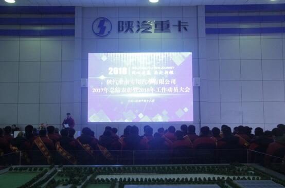 一元復(fù)始,萬(wàn)象更新。2018年1月18日,陜汽淮南專用汽車有限公司2017年總結(jié)表彰暨2018年工作動(dòng)員大會(huì)在公司展示中心如期召開,副總經(jīng)理馬嘯主持會(huì)議,公司100余名干部職工參加大會(huì)。 上午9時(shí)58分,大會(huì)在雄壯豪邁的《陜汽之歌》中拉開序幕。首先,總經(jīng)理作《聚焦專用車 謀求新發(fā)展》的主題報(bào)告,分別從專用車產(chǎn)品銷售和市場(chǎng)結(jié)構(gòu)調(diào)整、特色產(chǎn)品研發(fā)、產(chǎn)能提升、質(zhì)量管控、物資供應(yīng)、運(yùn)營(yíng)管理、人才培養(yǎng)、黨政文化建設(shè)8個(gè)方面對(duì)2017年工作做全面回顧,同時(shí)也深刻剖析了短板與不足。隨后,工會(huì)副主席趙林波對(duì)2017年工會(huì)工作和2018年計(jì)劃進(jìn)行總結(jié)匯報(bào),在2017年做好做實(shí)“尊重職工、錘煉職工、服務(wù)職工”系列惠民工程的基礎(chǔ)上,為全面支持2018年公司生產(chǎn)經(jīng)營(yíng)工作,工會(huì)將從創(chuàng)新活動(dòng)競(jìng)賽、創(chuàng)新職工關(guān)懷、創(chuàng)新工會(huì)文化三方面加大資源投入力度,積極營(yíng)造共建共享、追趕超越的美好發(fā)展圖景。 大會(huì)第三項(xiàng)議程,主持人宣讀陜汽淮南發(fā)〔2018〕9號(hào)《關(guān)于表彰 2017 年度各類先進(jìn)的決定》,并依次對(duì)2017年度涌現(xiàn)出的“先進(jìn)集體”、“先進(jìn)工作者”、“年度突出貢獻(xiàn)人物”和“崗位標(biāo)兵”進(jìn)行現(xiàn)場(chǎng)表彰,公司領(lǐng)導(dǎo)為各類先進(jìn)頒發(fā)了榮譽(yù)獎(jiǎng)牌及證書。隨后,先進(jìn)集體代表郭峰和先進(jìn)個(gè)人代表馮鵬分別就各自工作做了感人至深的先進(jìn)事跡報(bào)告,并表達(dá)了今后將繼續(xù)立足本職、奮力拼搏,同心共進(jìn)確保實(shí)現(xiàn)2018年各項(xiàng)工作目標(biāo)的決心。 志士惜日短,勇者常為新。2018年,是全力兌現(xiàn)“做中國(guó)最安全的危險(xiǎn)品運(yùn)輸車輛提供商”愿景的起步年,也是決勝“聚焦專用車”的攻堅(jiān)年,淮南專用車上下將堅(jiān)守初心、牢記使命,奮力開創(chuàng)屬于淮南專用車的最好時(shí)代!