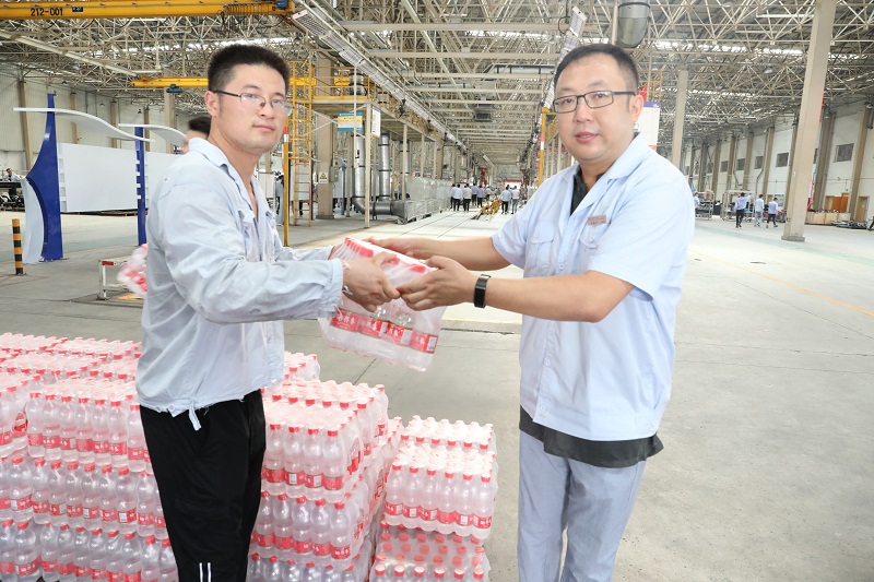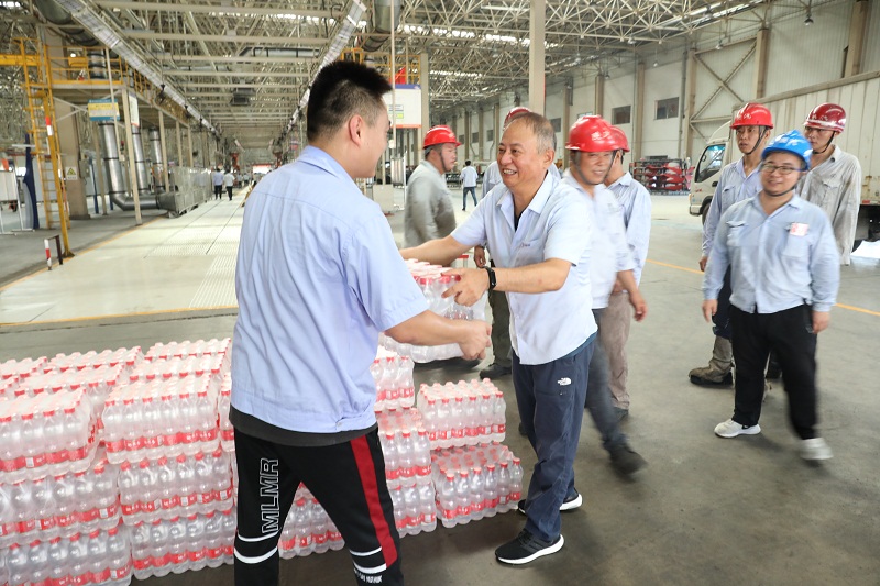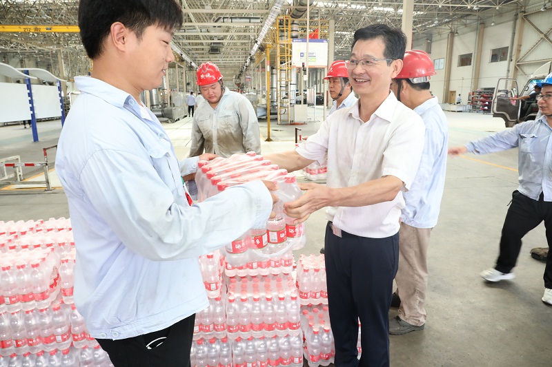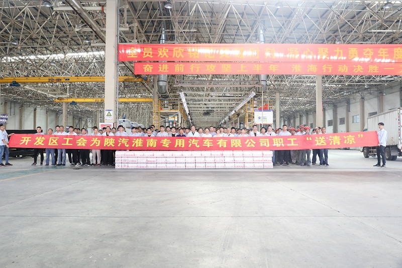 慰問現(xiàn)場,程主席對廣大一線職工的辛勤工作表示肯定,代表開發(fā)區(qū)對淮南專用車全體職工不畏高溫、堅守崗位,出色地完成生產(chǎn)任務(wù)表示衷心地感謝與祝賀,并現(xiàn)場在淮南專用車領(lǐng)導(dǎo)的陪同下為一線職工發(fā)放了防暑降溫飲品。