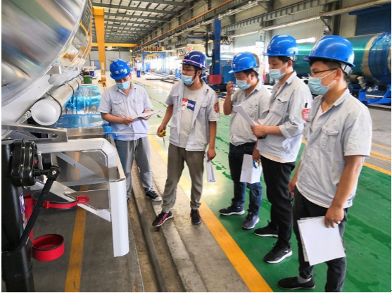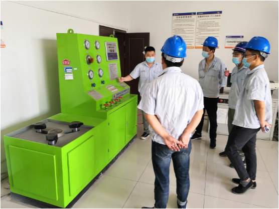 為拔高上裝質量檢驗團隊工作水平,公司組織質檢人員學習各類量檢具及檢測設備操作,對鋼板原材料元素分析、拉力試驗、鋁半掛氣管路氣密、整車尺寸、漆膜厚度、附著力等試驗操作標準進行培訓,通過對檢測設備操作疑難點集中考評,全面檢驗了質檢員的學習成果,實現(xiàn)檢驗知識儲備與操作能力的雙提升。